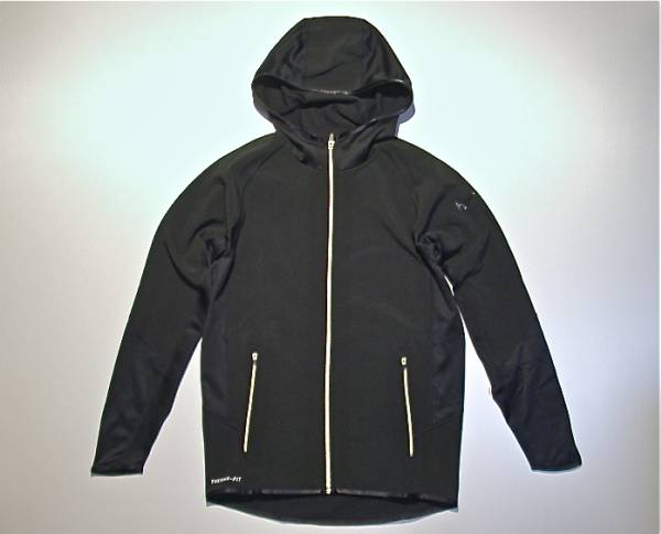 というジャケットを購入。THERMA-FIT系のものは撥水性、保温性が高くて、Tシャツの上から着るのにベストな肌触り。そして最近流行のデザインで体にフィットする形に裁断されていて、すごくレベルが高い商品なんだよね。というわけでネット注文。僕はブラックが好きなので、もちろんオールブラックのものを選択。心待ちにしていたわけです。